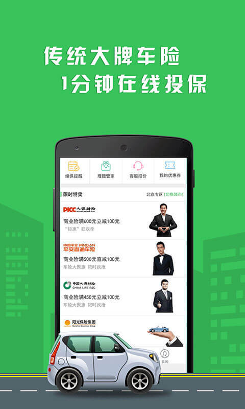 车险特卖:动态监测各大车险公司活动,保证车主享受底价购车险,平台还会定期推出限时优惠活动,进一步降低用户投保成本。