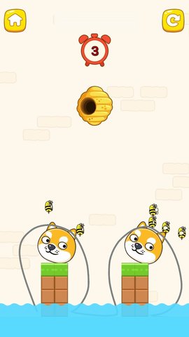 察看狗头和蜜蜂的位置,尝试各种办法画线,使狗头能疾速避开危机,顺利生存。