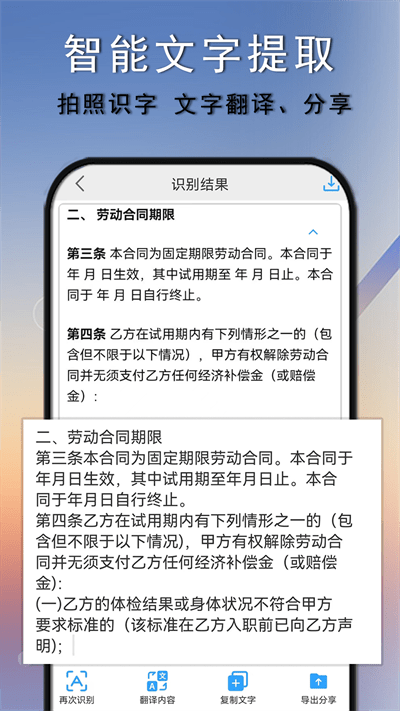 ·智能剪裁,移除杂乱背景,自由截取文字内容或单独区域,识别结果自动分段,确保排版整洁美观