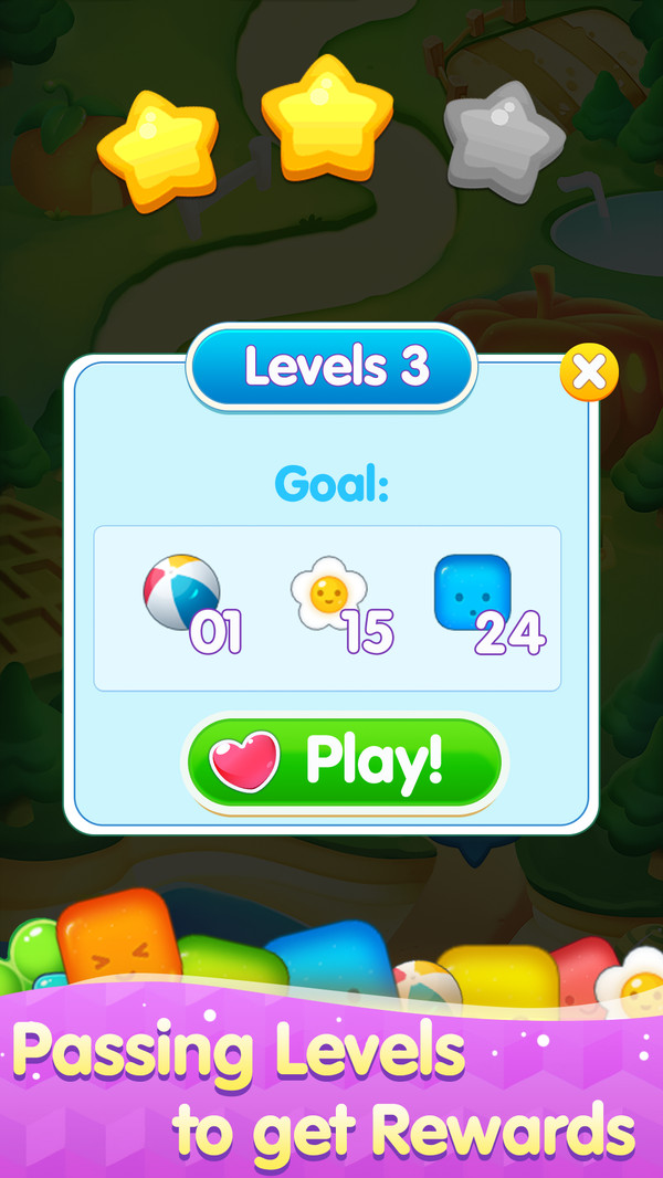 游戏提供了丰富多样的玩法内容:你将面对数百个精心设计的关卡挑战,每个关卡都有独特的障碍和任务目标;通过消除相同颜色的方块来收集能量,解锁威力强大的爆炸道具;完成关卡可以获得星星评价,积累足够的星星将获得丰厚的游戏奖励;随着游戏进程的推进,你将解锁更多有趣的游戏模式和特殊道具,让消除体验更加丰富多彩。