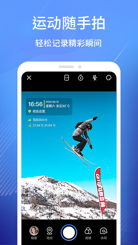 工作记录拍照、建筑、物业工作记录、考勤打卡、微商加水印、外勤拍照、现场取证、晨会记录、执勤巡逻、旅行打卡。特别适合需要留存工作证据的行业,如工程监理、市场调研、保险勘察等专业领域。