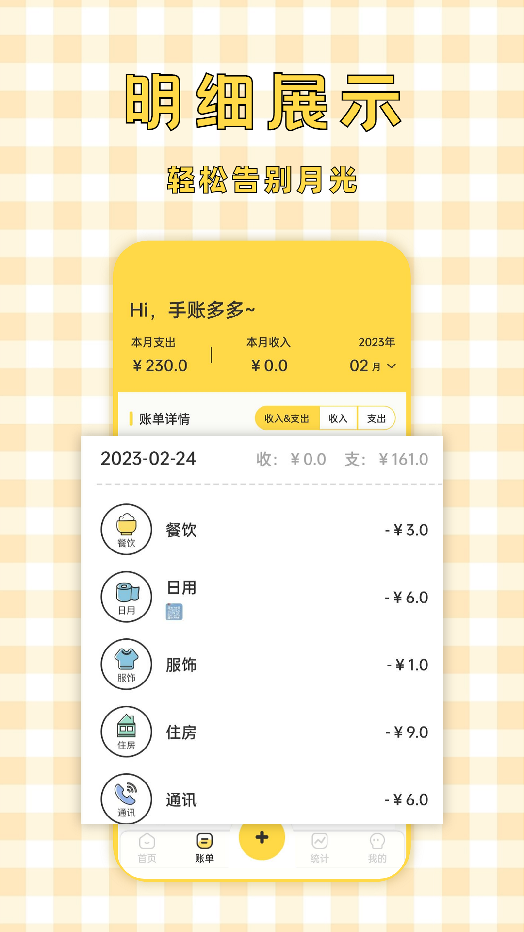 手账多多-轻便,简洁的记账好帮手!这款应用采用清新简约的设计风格,让记账过程变得轻松愉快。简洁的记账流程让新手也能快速上手,清晰的图表展示则让复杂的财务数据一目了然。无论是通勤路上还是咖啡厅小憩,你都能随时随地记录收支,实时掌握资金动态。特别设计的分类标签和备注功能,更能满足不同场景下的个性化记账需求。