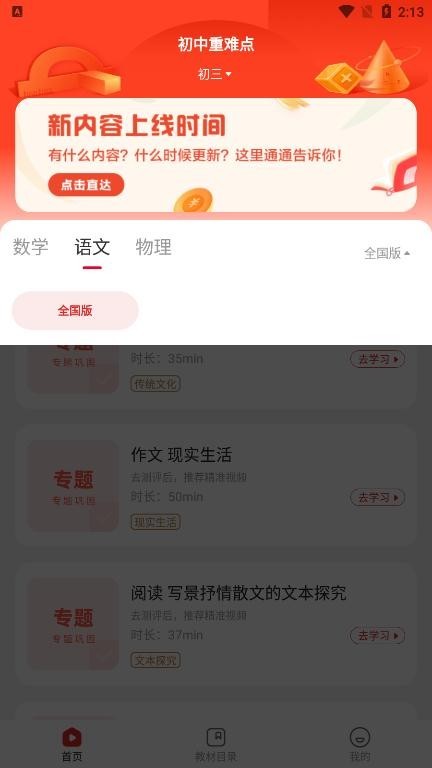 平台倡导自主学习理念,通过智能推荐系统和清晰的目录导航,让学生能够独立完成知识查漏补缺。首页会根据学习记录智能推荐最适合的复习内容,大纲目录则提供了系统化的知识框架,是课后自学的理想选择。