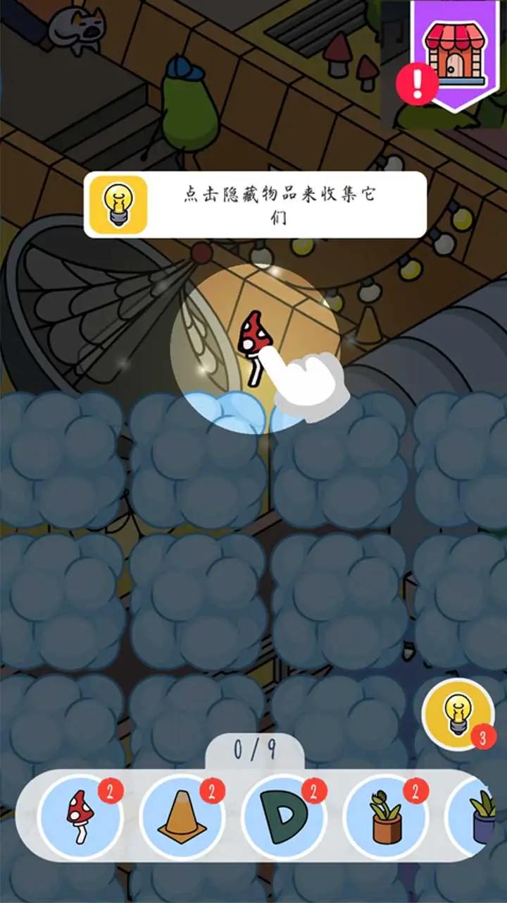 每个游戏场景中都有各种隐藏物品等待你去寻找,只有找到它们才能完成任务。物品隐藏方式千变万化,可能藏在阴影中、混在相似物品里,或是需要特定角度才能发现。完成任务后还能解锁特殊剧情。