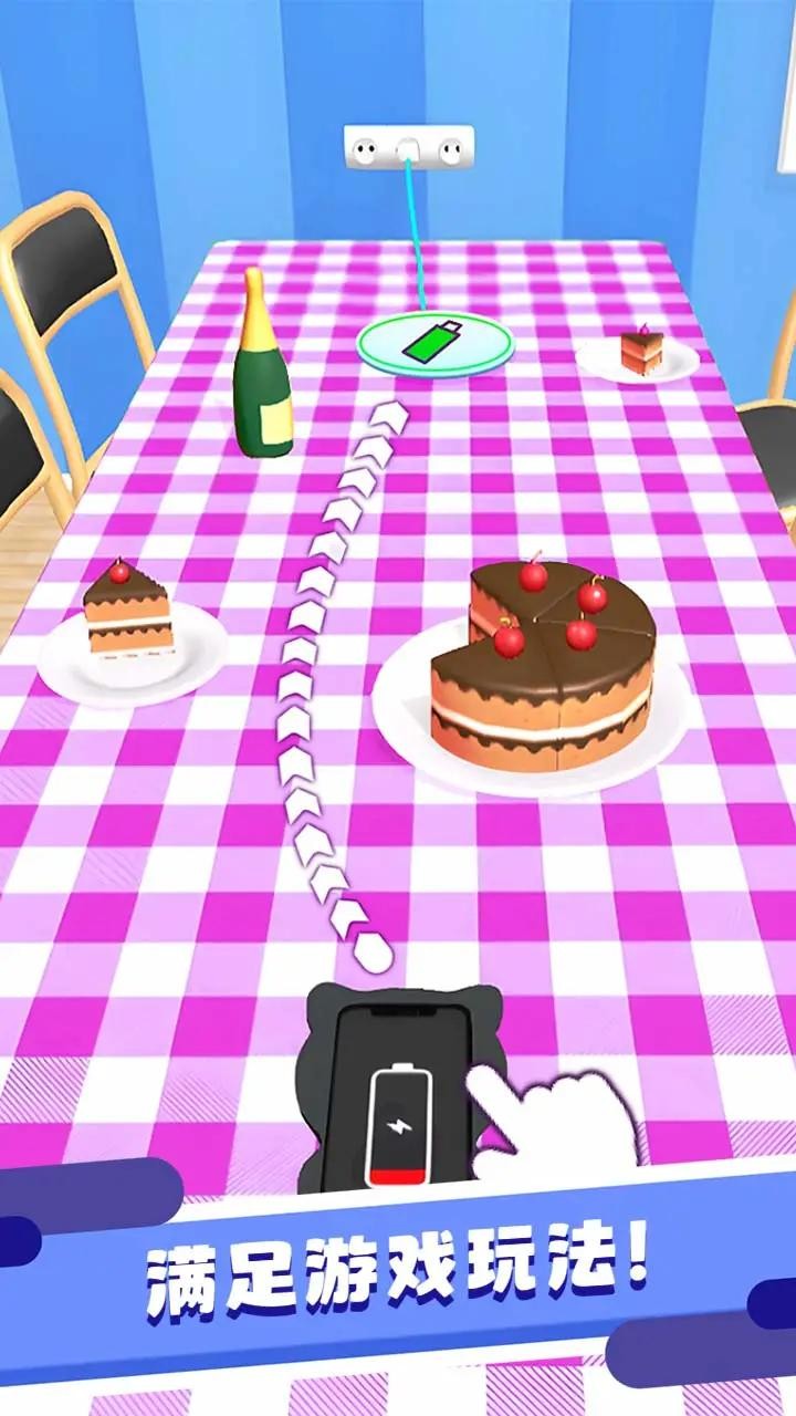 你需要不断挑战新的关卡,进入更多的场景为手机充电。每个新场景都经过精心设计,不仅视觉效果独特,还融入了符合场景特色的新玩法。玩家需要快速思考和反应,才能在指定时间内完成任务。游戏特别设计了时间奖励机制,完成任务越快获得的分数加成越高。你会遇到很多对手。在比赛中迅速击败他们。这些AI对手会模仿真实玩家的行为模式,有的会抢先抢夺充电器,有的则会设置障碍干扰你,增加了游戏的竞技性和趣味性。