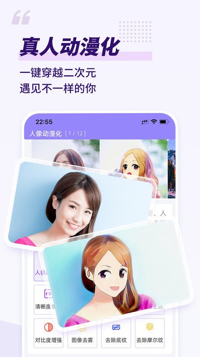 照片含糊修复、头像制造、壁纸、美图、图像处置、照片转换为漫画、古画、像素画、素描、人工智能、治疗、美图、动画、插画、美术。