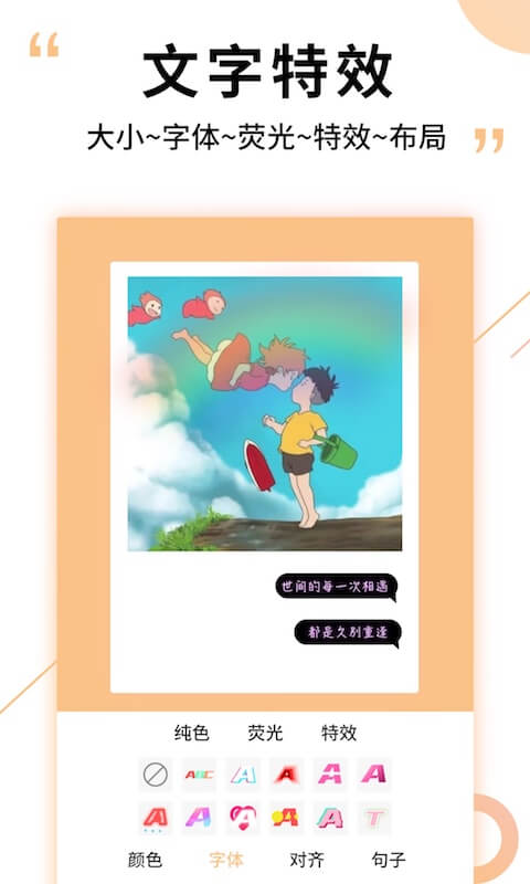 让文字变成图片,赋予普通照片全新的艺术生命。精美的纸质纹理,为您的作品增添复古质感。不同风格的字体选择,从优雅的手写体到时尚的现代字体应有尽有。各种尺寸的精美模板,适配不同社交平台的需求,让您的作品在任何场景都能完美呈现。