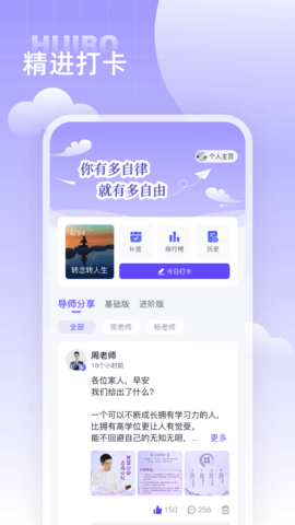 精进打卡;坚持每日的学习的打卡,与更多的网友一起来学习,打造一个自律的自己;系统会记录打卡天数并给予奖励,激励用户持续学习。