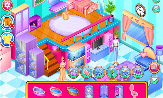 输入您的虚拟房屋,以计划和设计婴儿娃娃屋,将各种家具搭配和混合用于房间装饰。游戏提供了上百种装饰物品,激发孩子们的想象力和审美能力。