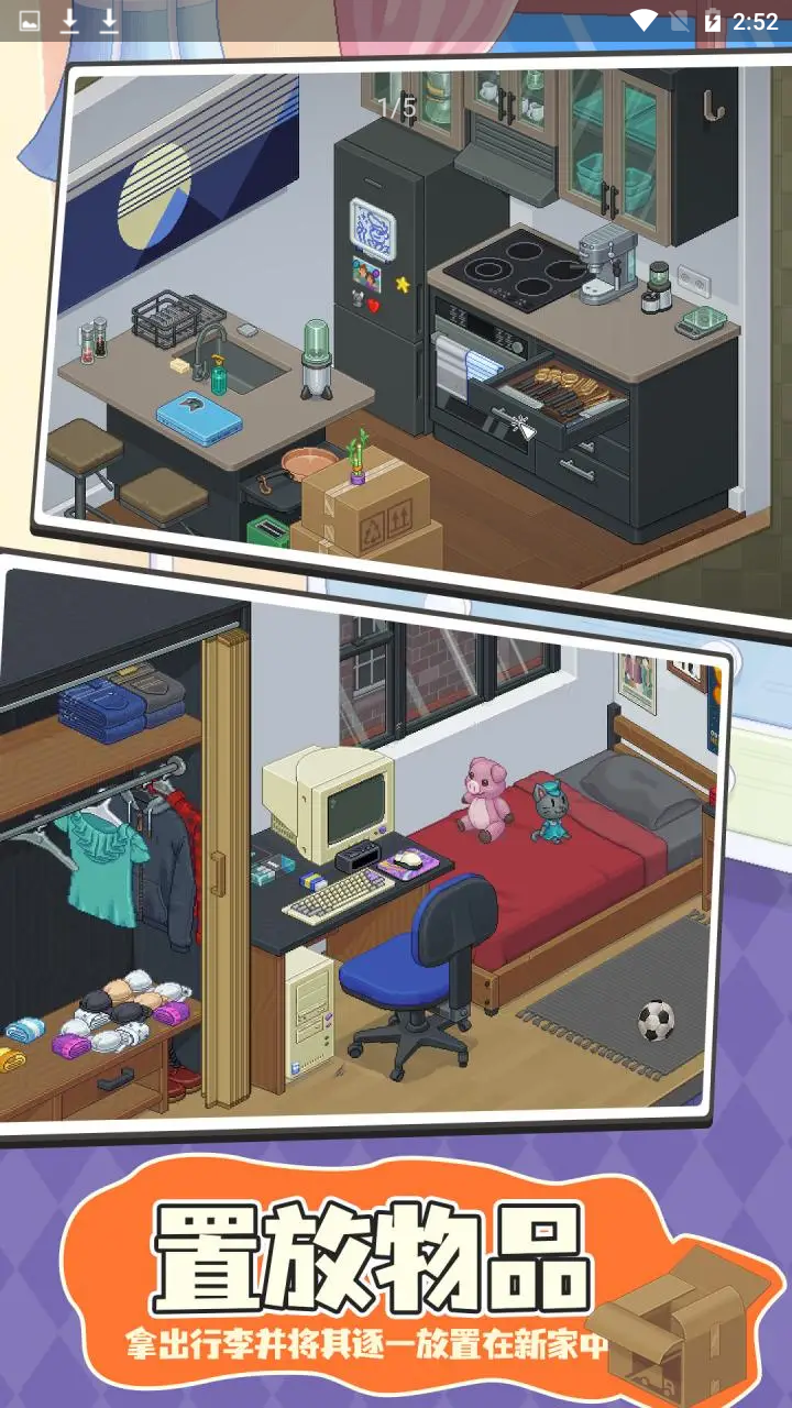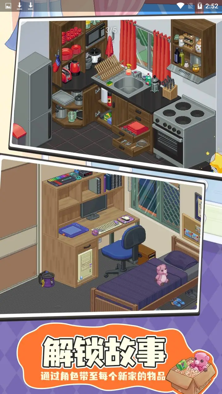 《开箱物语》通过8次不同的搬家经历,带你深入了解一个陌生人的生活轨迹。游戏的核心玩法在于合理规划有限的空间,将各种物品巧妙地收纳到新家中。随着游戏进程,你会逐渐发现这些物品背后隐藏的故事线索。游戏操作简单直观,但需要玩家发挥空间想象力,在有限的空间内创造无限可能。每次搬家都会带来全新的挑战和惊喜,让你在整理物品的过程中获得满满的成就感。