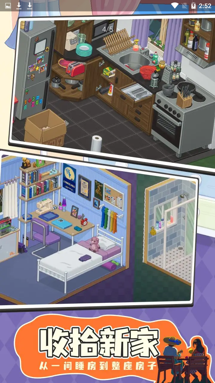 开箱布置新家——从一间寝室到整栋房子。游戏采用完全自由的玩法,没有时间限制、评分系统或压力指标。玩家可以随心所欲地摆放物品,无论是叠放餐盘、悬挂毛巾还是整理书柜,都能感受到布置家居的乐趣。游戏特别注重细节表现,每个角落都可以精心装饰。通过每次搬家时保留或丢弃的物品,玩家将逐步拼凑出一个完整的人物故事,体验一段独特的人生旅程。
