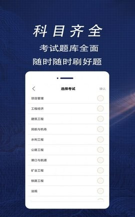 各种建筑考试题,课程内容都完全的覆盖的应用,随时去学习;题库内容持续更新,紧跟考试大纲变化,确保用户掌握最新考点。学习无忧,章节训练高效,可以随时的答题测试,随时都可以学习;智能学习报告功能,实时反馈学习进度和掌握程度,帮助用户合理安排复习计划。云端就可以模拟训练,可以轻松的学习的软件。支持多设备同步学习记录,用户可以在手机、平板等设备上无缝切换学习。