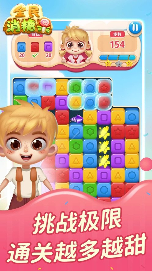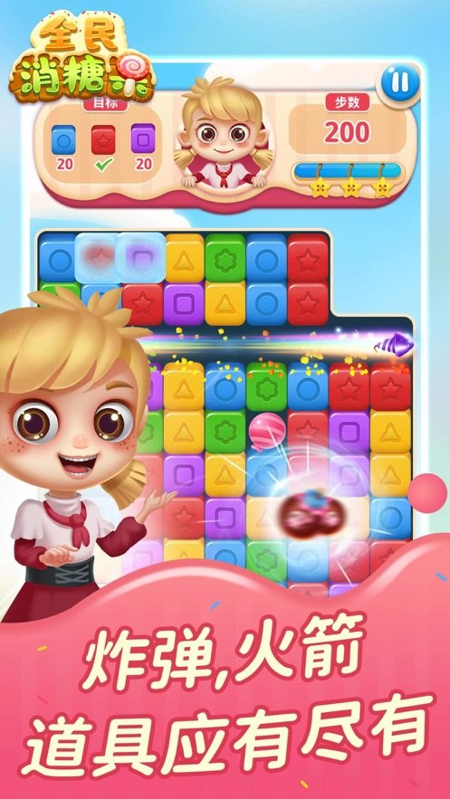《全民糖果消》是一款集休闲与益智于一体的消除游戏,玩家需要在关卡中将所有糖果消除干净。通过将相同糖果连接在一起,可以触发华丽的消除效果,同时还能使用各种道具来加速通关。游戏画面精美,操作简单流畅,适合各个年龄段的玩家。无论是消磨时间还是挑战自我,这款游戏都能带来无尽的乐趣,快来加入糖果消除的奇妙世界吧!