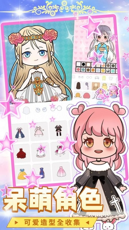 你可以创建多个可爱的公主角色,上百种服装、发型和配饰可以自由搭配,展现无限创意!