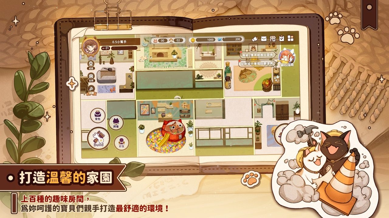 特殊的房屋构成,玩家可以在游玩过程中不断扩大居住地,自行搭配许多不同的游戏功能房间,给予猫咪们更舒适有趣的居住环境,在房间中也有许多神秘物品能让猫咪做出独特的互动,仅是静静的看着它们也能感到十分满足!游戏还支持房间主题自定义,从日式和风到现代简约,各种风格应有尽有,让你的猫咪之家充满个性。