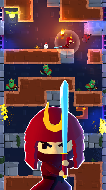 游戏采用直观的滑动操作机制,下滑可发动强力冲刺攻击,上滑能打击上方目标,左右滑动则实现快速移动。每次滑动都包含移动和攻击两个动作,需要玩家精准把握时机。游戏设置了多种失败条件,包括被怪物击杀、触碰致命陷阱等。塔楼内遍布危险的机关,如尖刺、撞锤、落石等,都需要玩家谨慎应对。长时间停留在有窗户的楼层会引来恶龙的火焰攻击,增加了游戏的紧张感。游戏中的地形分为可破坏的硬土块和不稳定的渣土块,需要玩家合理利用。战斗系统设计精巧,不仅能消灭怪物,还能破坏机关和利用环境。分数系统极具策略性,通过收集萤火虫和击杀怪物获取分数,这些分数可用于购买强力道具。每关开始前都会随机生成挑战任务,完成这些挑战能获得额外分数加成,大大提升了游戏的策略深度。