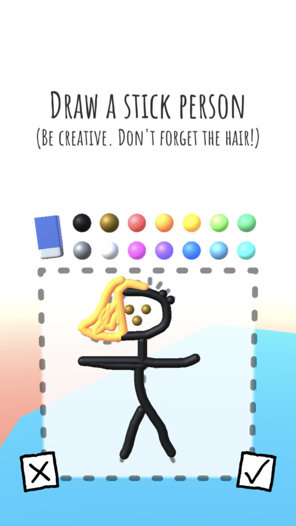 画个摇摆涂鸦人玩法没有拘束限制的高度自由的操作玩法,非常的自由。没有任何规则限制,完全按照玩家的想法来创造和闯关。