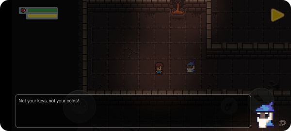 穿越神秘的地牢,与古怪的npc互动,并与敌人对峙。游戏中的每个场景都暗藏玄机,玩家需要通过观察和思考来发现隐藏的学习机会。战斗系统也融入了比特币知识元素,比如某些敌人需要运用正确的加密概念才能击败。