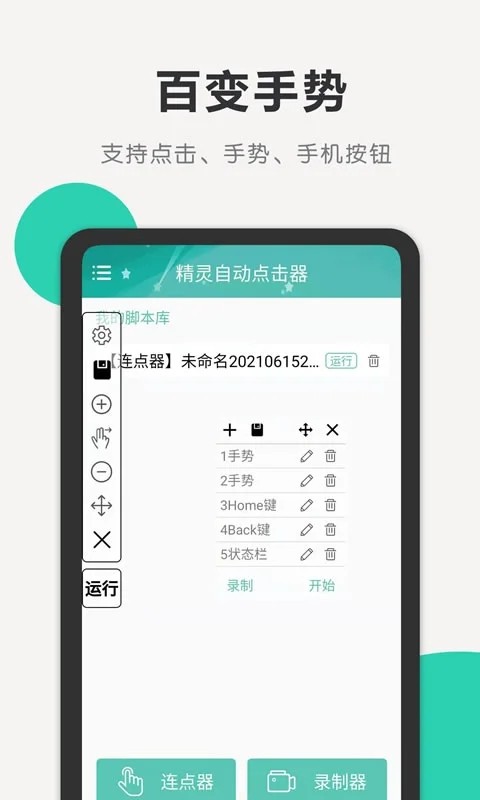 作为手机屏幕操作的得力助手,精灵自动点击器提供了灵活的点击和滑动功能,用户可以根据不同场景自由组合编辑操作脚本。软件内置多种预设脚本,方便快速使用,同时也支持用户自定义参数,满足个性化需求。无论是游戏连点、应用测试还是日常重复操作,它都能完美适配,让您的手机操作更加智能高效。