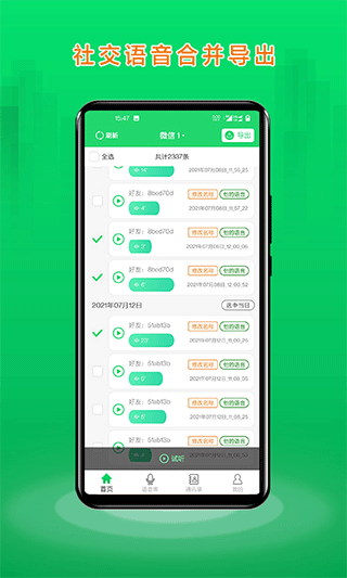 支持直接导出微信各类语音消息,包括私聊、群聊及公众号语音内容,兼容不同场景下的使用需求。用户可创建个性化分类标签,通过关键词、联系人等维度建立专属语音库,实现高效管理。软件深度整合聊天记录回溯功能,即使数月前的历史语音也能精准调取,确保重要信息永不丢失。所有语音合成操作完全免费,无需复杂设置即可生成高质量MP3文件。更令人惊喜的是,这款零门槛工具全程无需注册码验证,安装即用,真正实现用户友好体验。