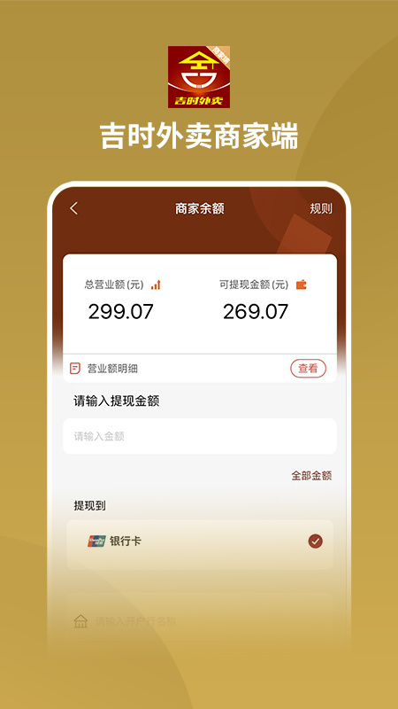 吉时外卖商家端app是一款专为餐饮商家打造的智能管理工具,集商品管理、订单处理、财务统计等功能于一体。通过简洁直观的操作界面,商家可轻松完成菜品上下架、实时订单跟踪、营业数据查看等日常运营工作。系统采用高效稳定的架构设计,支持多终端同步操作,大幅提升店铺管理效率。无论是连锁餐厅还是小型外卖档口,都能通过这款应用实现数字化经营转型,快速响应市场需求变化。