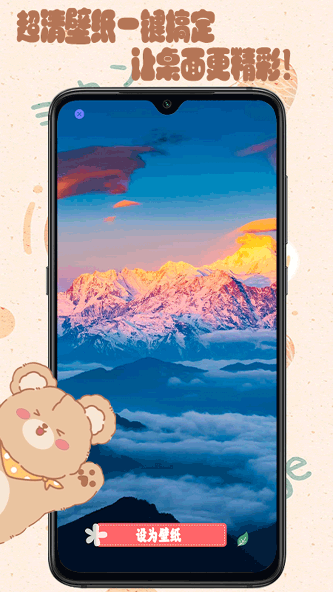 壁纸的挑选非常智能,根据用户喜好推荐个性化内容,设置也是超级方便,点击设为壁纸,即可任性设定,让桌面更精彩。支持预览功能,让您在选择前就能看到实际效果。