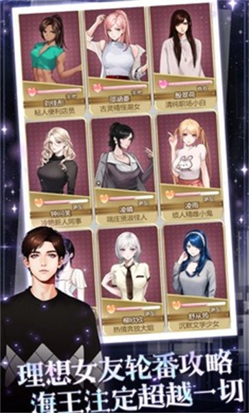 去攻略更多的人物角色,成为一名真正的海王。游戏设计了数十位性格迥异的可攻略对象,每位都有专属剧情线。