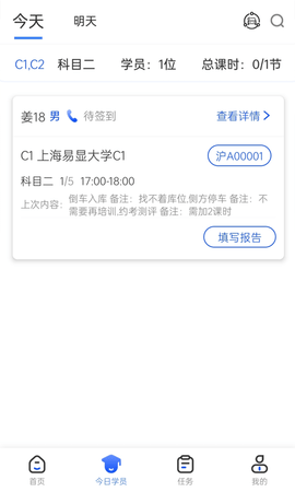 今日学员详情页会实时更新每位学员的练车情况,包括练习时长、完成项目等详细信息,方便教练进行针对性指导。
