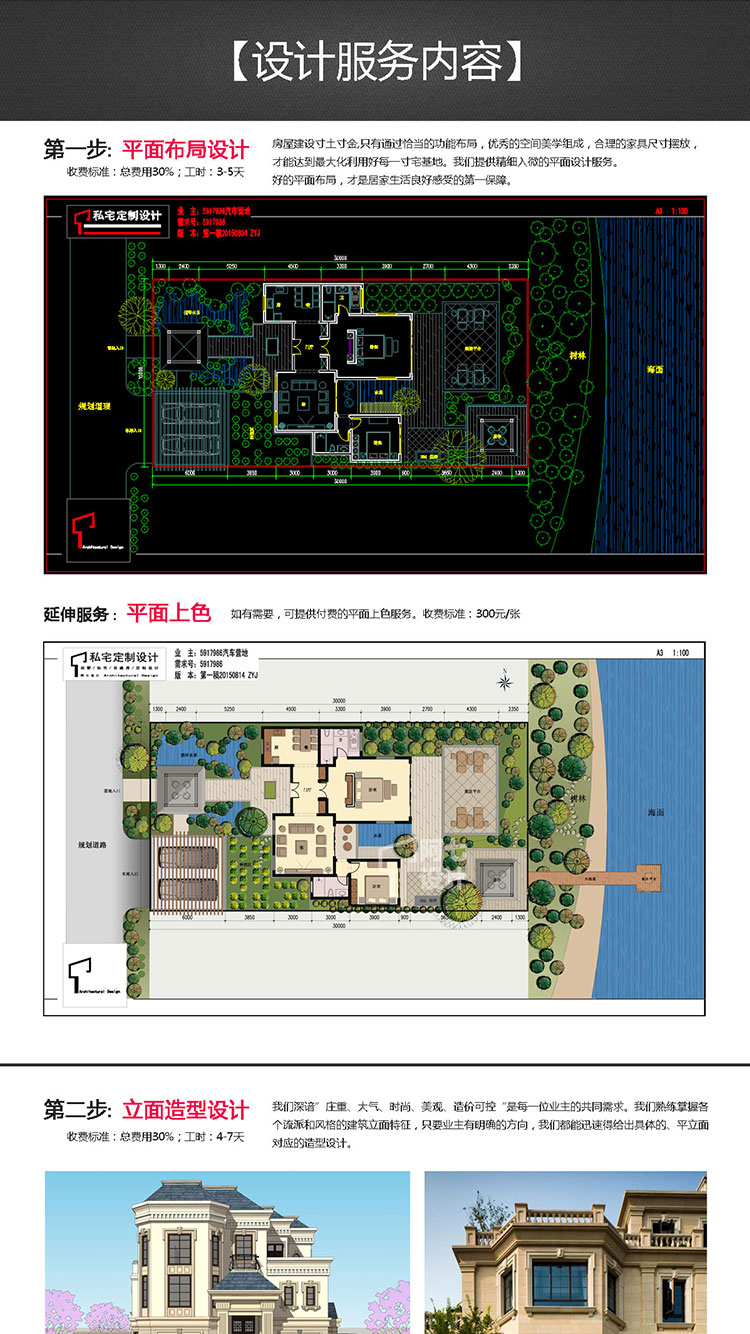 服务类型:标准别墅图纸、个性化定制设计、旧别墅改造方案