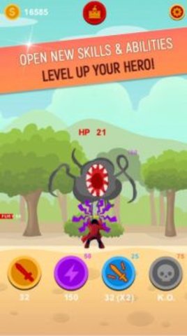 点击骑士冒险的操作非常简单,只需点击屏幕即可完成攻击、释放技能等操作。随着游戏的深入,你可以消耗金币解锁更多高级攻击按钮,体验更丰富的战斗玩法。游戏画面简洁明快,技能特效华丽炫目,视觉效果极佳。战斗系统采用点击机制,击败怪物后有机会获得随机武器,进一步提升战斗力。通过积累经验或使用钻石,你可以解锁新的英雄角色,让冒险之旅更加丰富多彩。