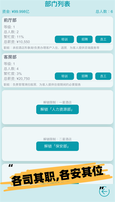 模拟经营大酒店是一款极具趣味性的模拟经营类游戏,为玩家带来沉浸式的酒店管理体验。在这里,你将化身为酒店经营者,从零开始打造属于自己的豪华酒店帝国。游戏不仅提供丰富的经营玩法,还融入了社交互动元素,让玩家在虚拟世界中感受真实酒店运营的乐趣。