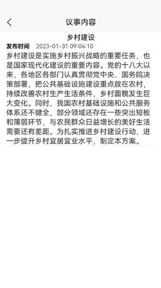 平台功能模块丰富多样,包括议事管理、日程安排、村规民约学习、问卷调研、财务公开等核心板块。每个板块都经过精心设计,操作流程简单明了。技术推广和政策解读专区会定期更新内容,村民可以根据自己的需求选择相应的分类进行学习,获取最新的农业技术和政策信息。