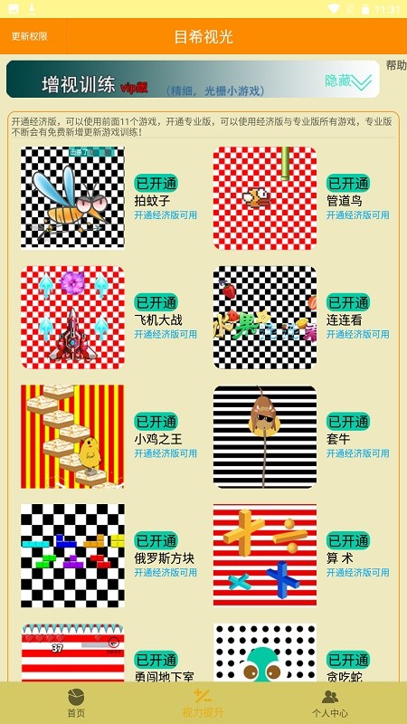 这里有很多专业的训练方法提供,让孩子在游戏的过程中就可以训练。每个训练游戏都经过专业设计,既保证趣味性又确保训练效果,让孩子在不知不觉中完成视力提升。