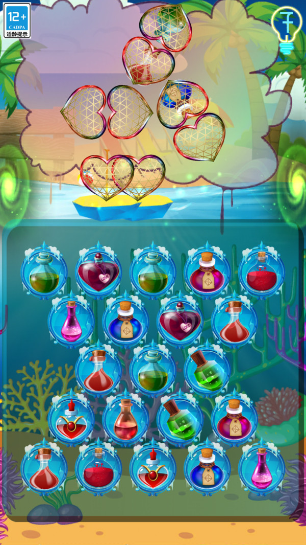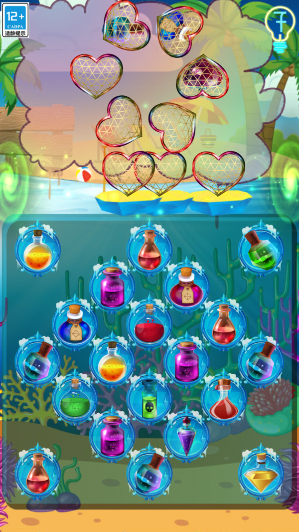 连线三个一样的魔法药瓶来完成拼图。每次成功连线都会产生连锁反应,可能带来意想不到的惊喜效果。