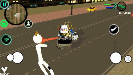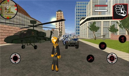 游戏中的警察系统也是一大亮点,他们是你维护正义的盟友。别惹警察,他们是好人。玩家可以驾驶各种先进军用车辆,用毁灭性火力统治城市,或者升级你的Stickman英雄,解锁更多强力武器参与流行战争!游戏鼓励玩家通过正当手段维护秩序,让它成为一个美丽的城市,不要变成带着鲜血和抢劫的犯罪城市。