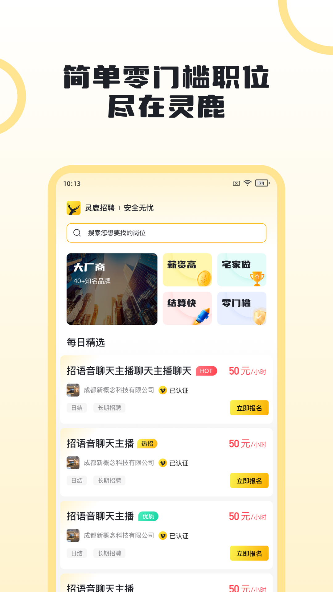 灵鹿是一款基于人工智能技术的高效人才招聘平台,致力于为求职者和企业搭建精准对接的桥梁。通过先进的AI算法,系统能够智能分析简历与岗位需求,实现毫秒级精准匹配,大幅提升招聘效率。平台汇聚海量优质企业资源,每日更新上万条真实可靠的招聘信息,覆盖互联网、金融、教育等热门行业。无论是应届毕业生还是资深职场人士,都能在这里找到适合的职业发展机会,同时享受专业的职业规划咨询服务。