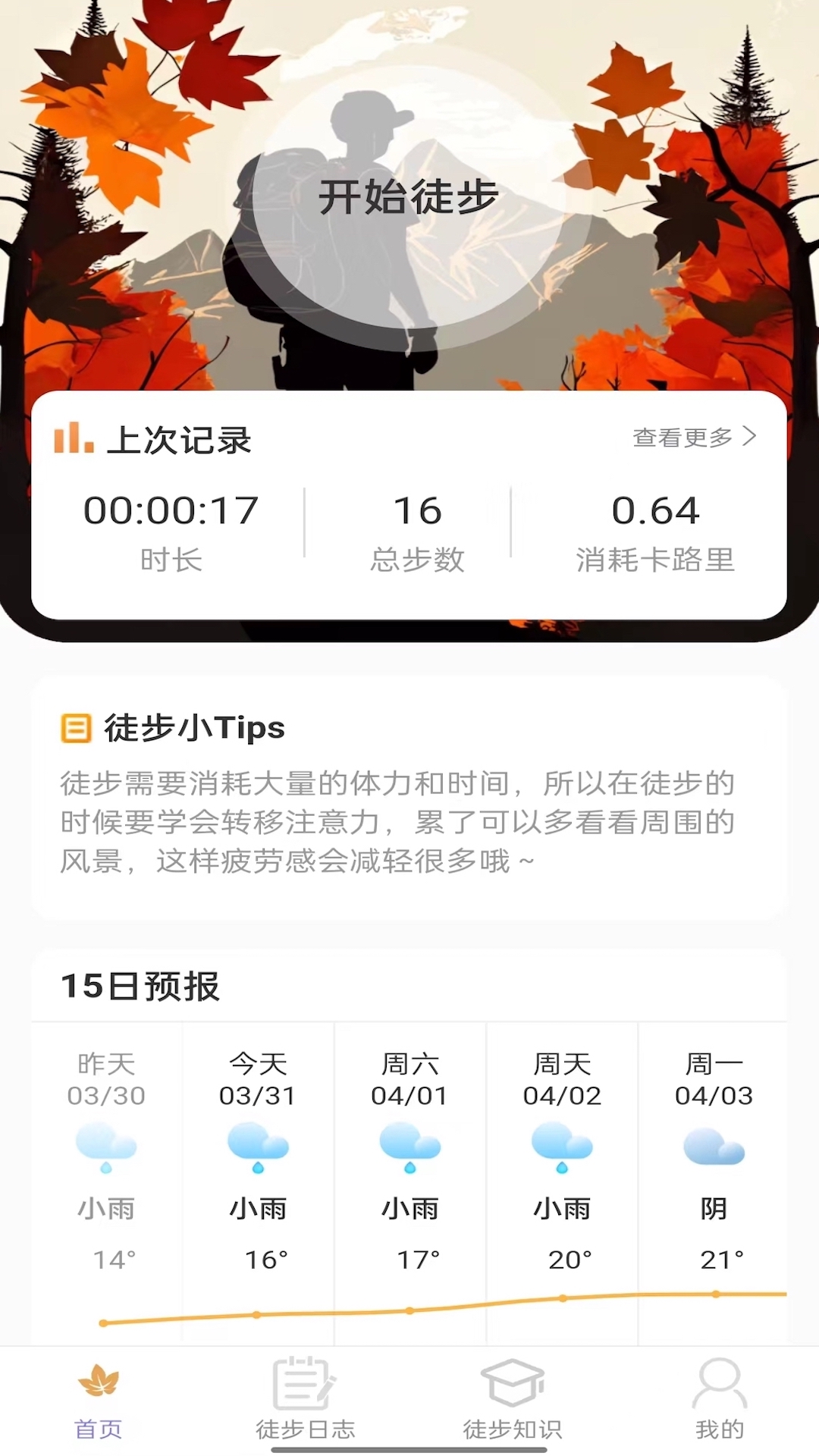 枫叶悦步的徒步记录功能不仅能精确记录每次徒步的时间和里程,还能根据地形自动调整计算方式,确保数据的准确性。软件内置的徒步知识库汇集了大量专业徒步技巧和安全指南,为用户提供全方位的徒步支持。独特的徒步日志功能让用户可以图文并茂地记录每次徒步的所见所感,打造专属的运动记忆库。这些功能共同构成了枫叶悦步区别于其他运动软件的独特优势。