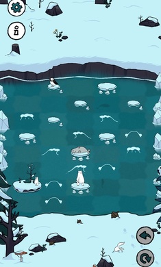 10几种独特的地图机制交织成150个精心设计的关卡,每关都像一幅极地生态画卷。沉浸在冷冽的极地氛围与童趣的风格中,横渡冰洋时能听到真实的冰川碎裂声效。仔细斟酌每一步,因为逐渐融化的冰块将减少你的下一步选择,这种动态难度设计极具代入感。不限时、无压力、不用追求高分、可以随时悔棋或前往别关。静心体验每一个挑战,游戏还设有贴心的提示系统。可爱的小熊、海豹、海鹦等极地生物都会成为你的旅途伙伴,它们呆萌的动作表情令人会心一笑。