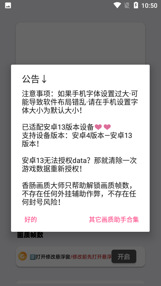 香肠画质大师安卓13版本是由知名开发者小沐风精心打造的一款专业级画质优化工具,专为提升游戏视觉体验而设计。这款工具能够突破游戏内置画质设置的限制,为用户提供更加丰富多样的画质调整选项,帮助玩家解锁前所未有的高清游戏画面。通过创新的悬浮窗操作模式,用户可以快速写入画质参数,轻松完成各项画质优化设置,无需复杂的操作流程。特别值得一提的是,该版本新增了平板视角搜索功能,能够完美解锁平板比例,让玩家在游戏中获得更广阔的视野和更沉浸式的游戏体验。本次推出的2023最新版本经过全面升级,已完美适配安卓13系统,彻底解决了闪退等兼容性问题,让升级新系统的用户也能安心使用。