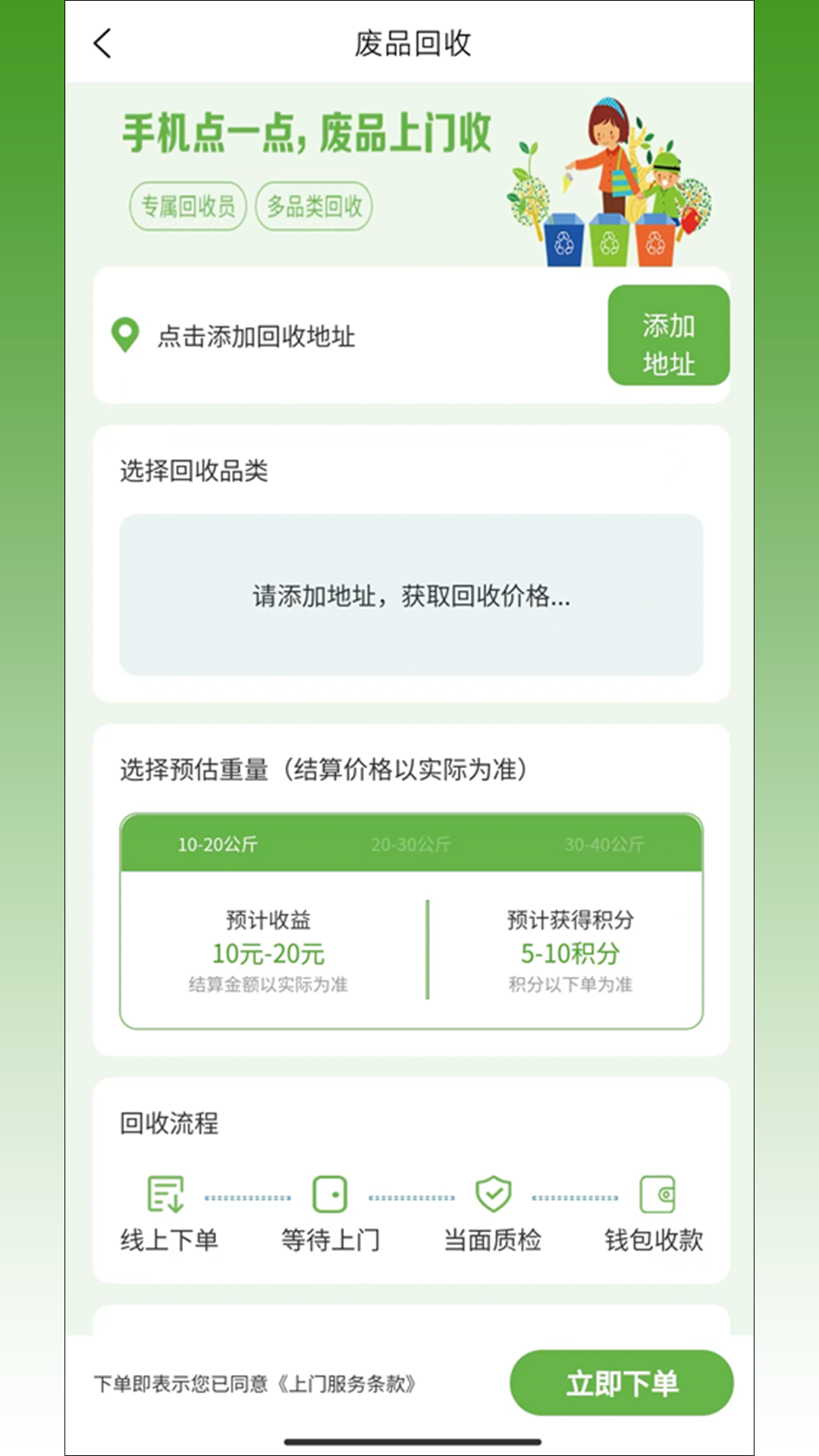 再生城市APP是一款专注于环保回收服务的智能平台,致力于为用户打造便捷高效的废品处理体验。通过手机一键下单,专业回收人员将快速响应并提供上门服务,覆盖塑料、衣物、纸张、金属、玻璃等多种可回收物。该软件不仅简化了传统废品回收流程,更通过数字化管理推动资源循环利用,让环保行动融入日常生活。用户可随时查看回收数据统计,直观了解个人对环境保护的贡献值,真正实现绿色生活与科技创新的完美结合。