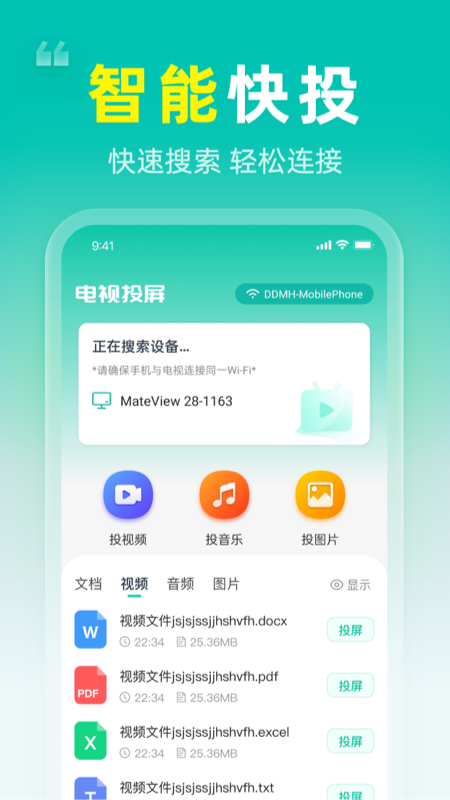 手机一键投屏app是一款功能强大的跨设备投屏工具,能够轻松实现手机内容向电视、电脑等大屏设备的无线传输。该软件采用先进的传输技术,确保投屏过程稳定流畅,画质清晰无延迟。无论是工作演示、在线学习,还是家庭娱乐观影,都能通过简单的操作完成投屏。支持视频、音乐、图片等多种文件格式,兼容市面上绝大多数安卓设备,让您享受便捷的投屏体验。操作界面简洁直观,即使是初次使用的用户也能快速上手。