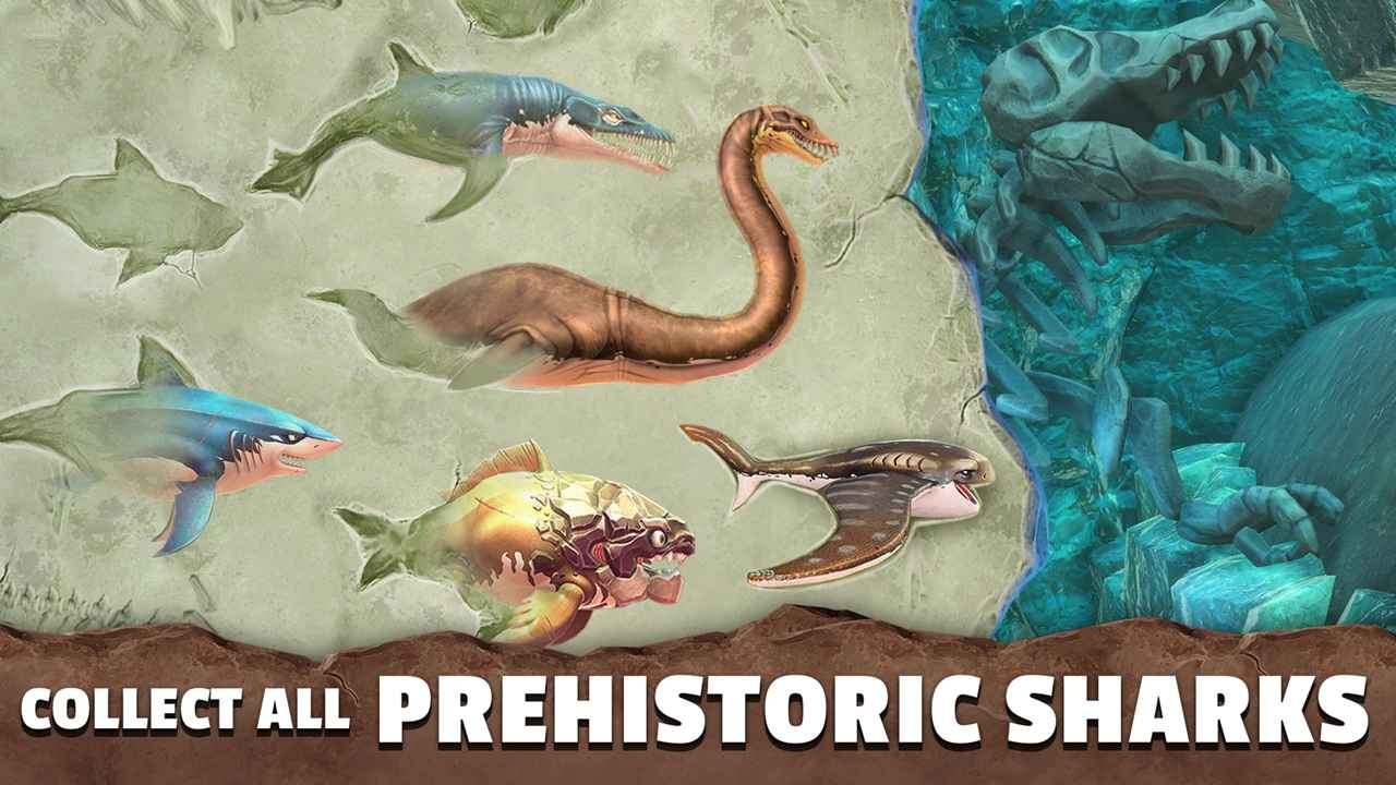 饥饿鲨史前世界最新版是一款吞噬远古巨鲨的游戏。你扮演一条鲨鱼,不时吞食其他海洋生物,进化成一个更强大的生物。有多个海湾和水域供您探究,每个区域都有本人的特性和应战,并留意水下风险。