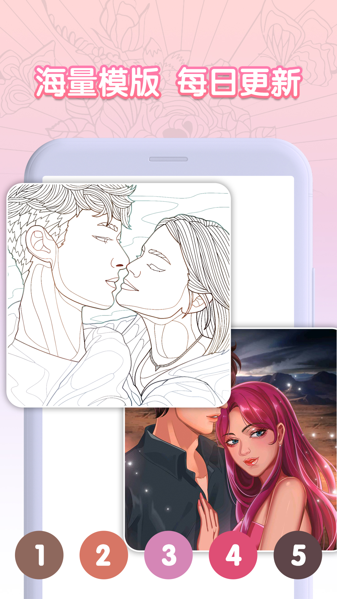 支持分享功能,用户可以将作品分享给好友、亲戚和粉丝。一键分享至主流社交平台,展示你的艺术才华。拥有多种涂色方式,包括多点拖动涂色、单点涂色、涂色笔刷等。每种方式都经过优化,确保操作手感自然流畅。支持多种语言版本,方便不同国家、不同语言的用户使用。目前已支持12种语言,覆盖全球主要市场。