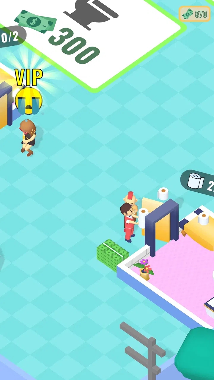 这是一款极具创意的厕所经营模拟手游,玩家需要全方位管理厕所的日常运营。除了基础的清洁打扫和提供卫生纸服务外,还要关注顾客体验和设施维护。游戏真实模拟了厕所经营的各个环节,从顾客使用到付费离开都充满细节。随着游戏进程,你可以解锁更多高级功能,比如安装自动感应水龙头、智能马桶等现代化设备,让厕所服务更上一层楼。