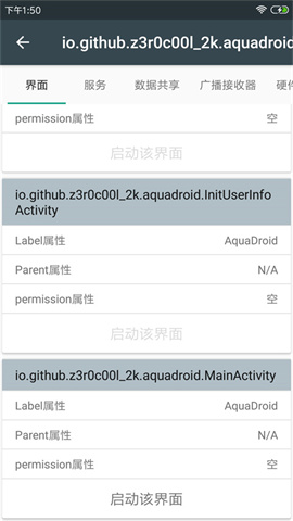 点击任意应用图标即可进入详情页面,这里会展示该应用的包名、版本号等基础信息,同时还会提供应用权限、后台服务等高级数据,帮助用户全面了解应用运行情况。