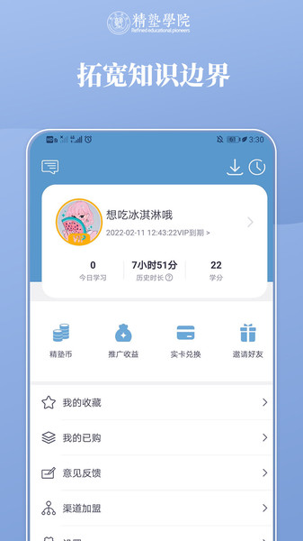 连续听课或邀请好友注册可获得相应学分,学分可兑换精塾币使用。新用户注册即赠100精塾币体验金。