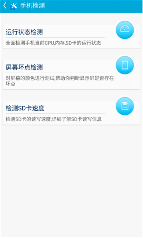 以及执行电话检测和信息查询的能力,以及确定SD卡的读写速度。