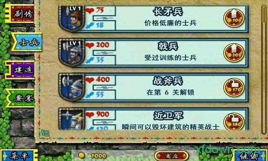 多种防御塔和兵种供玩家选择,玩家可以通过升级和搭配来应对不同类型的敌人,增加了游戏的策略性。每个兵种都有详细的数据面板和背景故事。