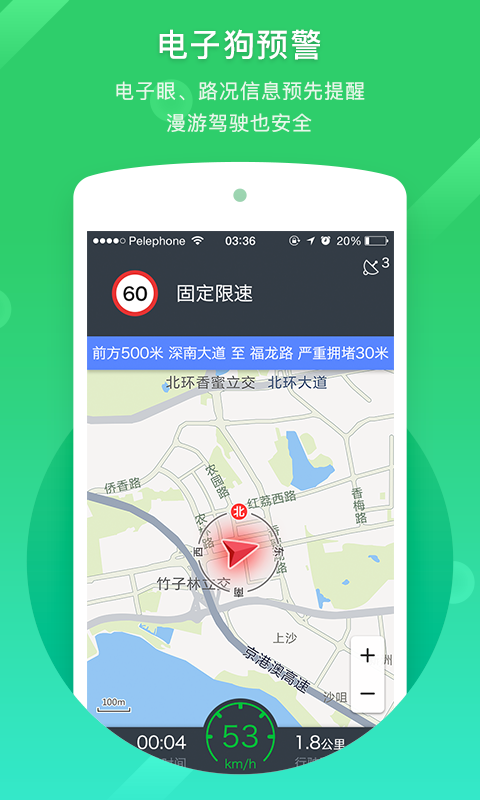 电子眼提醒:提前预警电子眼和限速信息,确保安全驾驶。