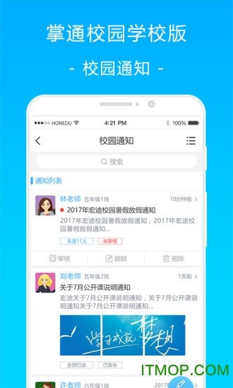 掌通校园学校版是面向教育行业的一站式移动管理平台,深度融合校园管理、家校协同与内部办公三大核心场景。该应用不仅实现了教师与家长的无障碍沟通,更通过系统化的功能模块帮助学校构建智慧化管理体系。从日常考勤到教学管理,从通知传达到行政办公,掌通校园以技术创新推动教育管理现代化,让教师能够专注于教学本质,为学生营造更优质的教育环境。